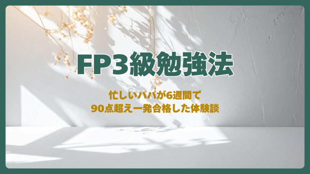週6勤務・3歳児育児中でもFP3級に一発合格できた実録。スキマ時間だけで使った教材3つと勉強法を全公開。学科90%・実技95%を達成したパパの体験談です。