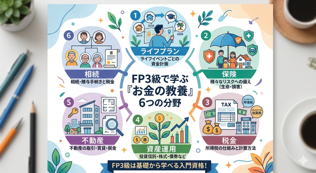 カバーする範囲は幅広く、ライフプラン・保険・税金・資産運用・不動産・相続の6分野にわたります。