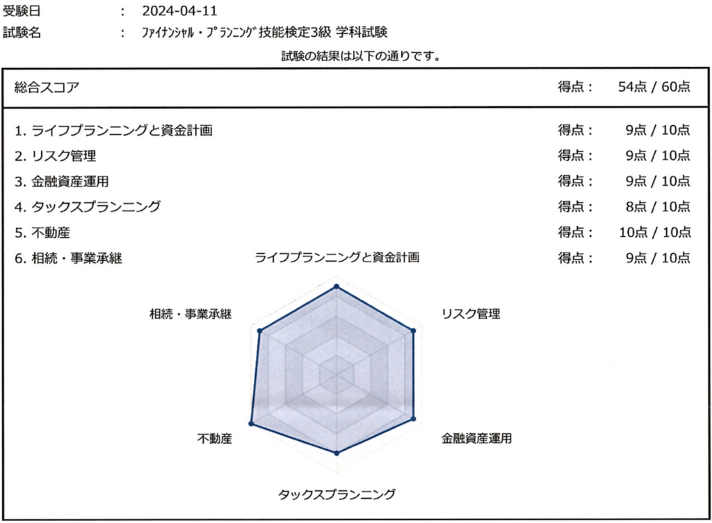 - 学科:54/60点(90%)