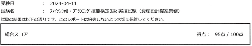 - 実技(FP協会):95/100点(95%)
