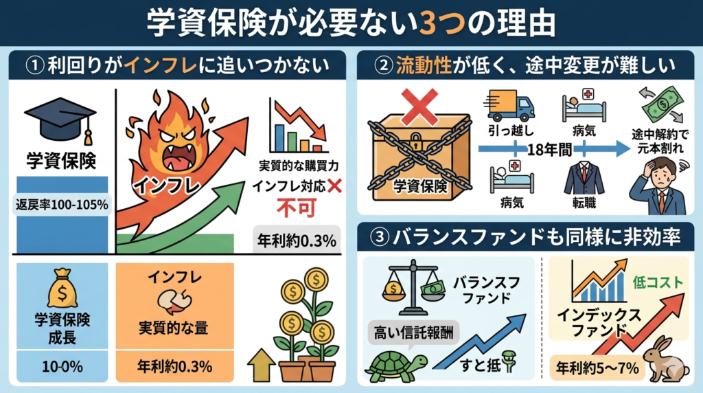 ✅️ 学資保険はインフレに勝てず、流動性も低い