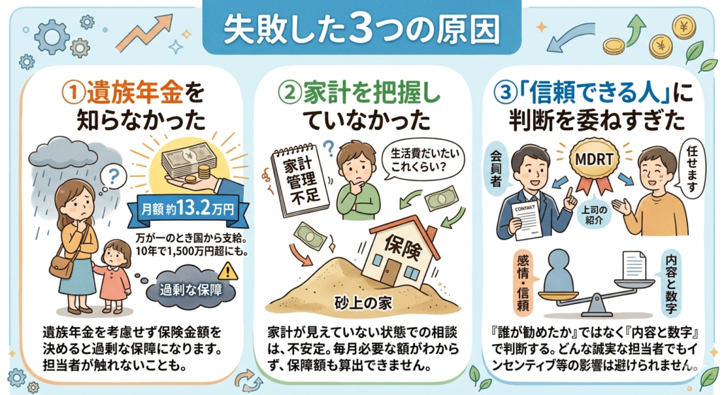 遺族年金を考慮しないまま保険金額を決めると、必ず過剰な保障になります。私が相談した担当者は、遺族年金に一切触れませんでした。